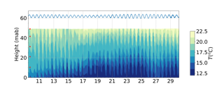 Dans cette présentation nous montrons des premières observations d’ondes internes non linéaires (OINL) sur le plateau des Landes au sud du Golfe de Gascogne. Des mesures de températures et pression en un point fixe, dans 65m de profondeur, ainsi que des mesures d’ADCP (vitesse du courant et intensité rétrodiffusée) nous permettent de suivre l’évolution de la marée interne et OINLs pendant 1 mois. Les 15 premiers jours, la marée interne dégénère en trains d’OINLs. Les OINLs sont associées à des structures hydrodynamiques qui suggèrent que certaines d’entre elles ont un noyau tournant piégé et seraient capables de transporter de la matière. Ce résultat n’est pas retrouvé 15 jours plus tard quand, au même endroit, la dégénérescence de la marée interne et les OINLs à noyaux tournants ne sont plus observées. Pendant cette seconde période on observe régulièrement des trains d’OINLs cette fois ci à l’aide des memes types de mesure proche du talus, dans 150m de fond. Le suivi MVP d’une des OINL montre que la propagation vers la côte mène à un changement du sens de rotation (i.e. signe de polarité) de l’onde. Cette différence entre les deux périodes de vives-eaux, de la dynamique interne côtière, est corrélée à l’évolution du profil de stratification ambiant. La stratification proche du fond diminue pendant la période de morte eaux suite à un upwelling. Ces observations suggèrent que les variations de stratification côtière peuvent significativement modifier l’hydrodynamique interne et la dynamique sédimentaire qu’elle induit.