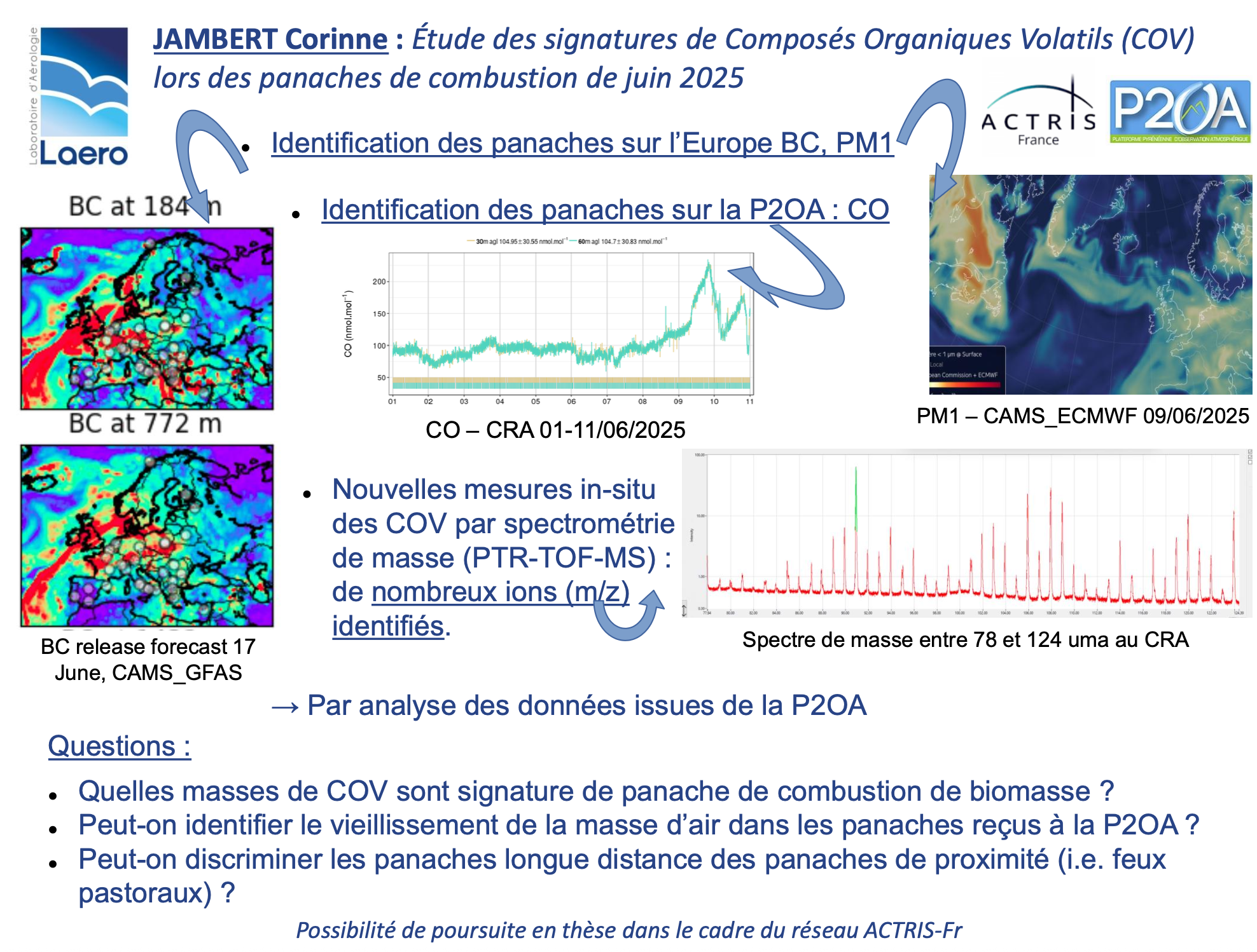 Le travail consistera à trouver la signature de traceurs de combustion organique dans des mesures de spectrométrie de masse par ionisation douce réalisées sur les sites de la P2OA.