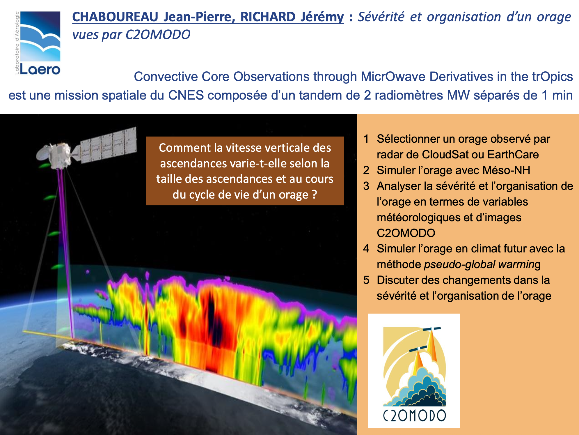 Le stage vise à évaluer ce que les données de la future mission spatiale C2OMODO pourraient apporter dans notre connaissance de la variabilité de la vitesse verticale de l’air en fonction du cycle de vie et de l’organisation des systèmes orageux.