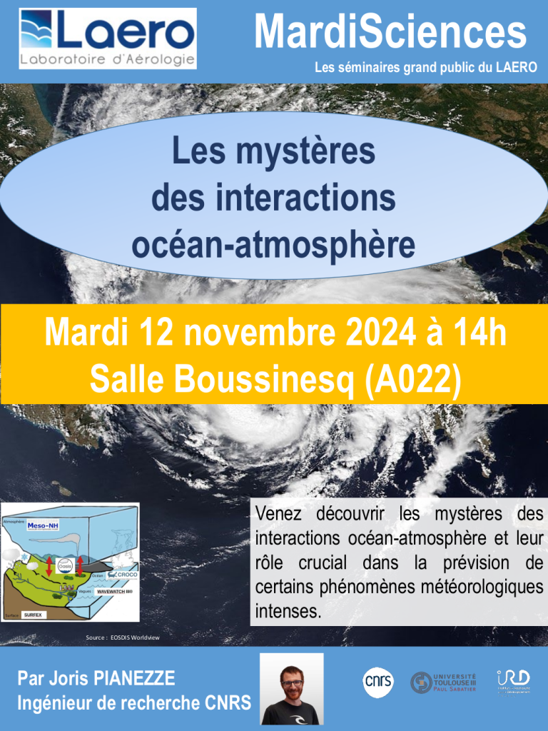 Dans ce séminaire, conçu pour être accessible à tous, nous explorerons comment ces échanges influencent les conditions météorologiques extrêmes et quelles avancées scientifiques réalisées au LAERO permettront de mieux les comprendre et de les prévoir.
