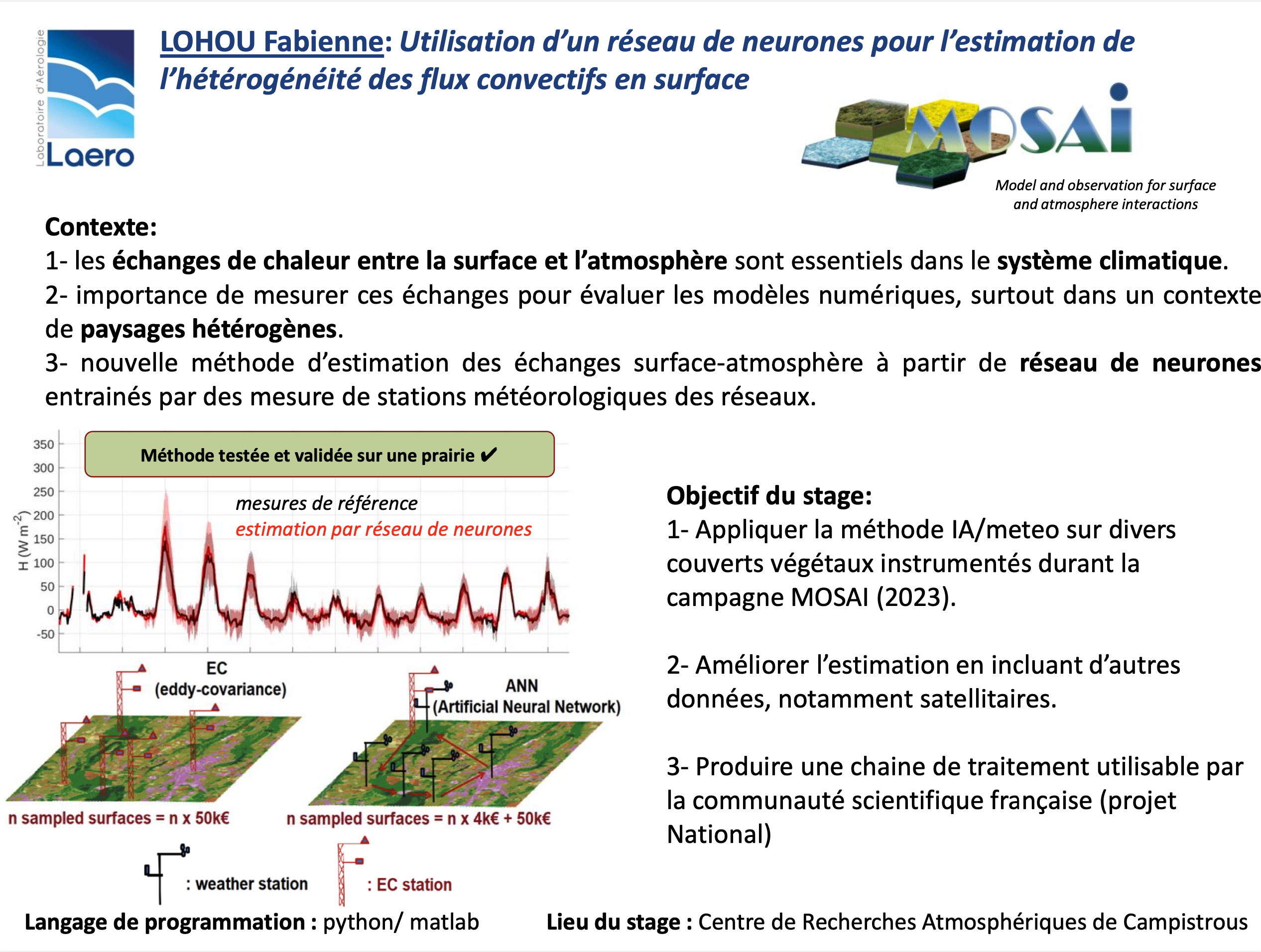 | Utilisation d’un réseau de neurones pour l’estimation de l’hétérogénéité des flux convectifs en surface | Fabienne LOHOU | LEETCHIE | Pourvu |