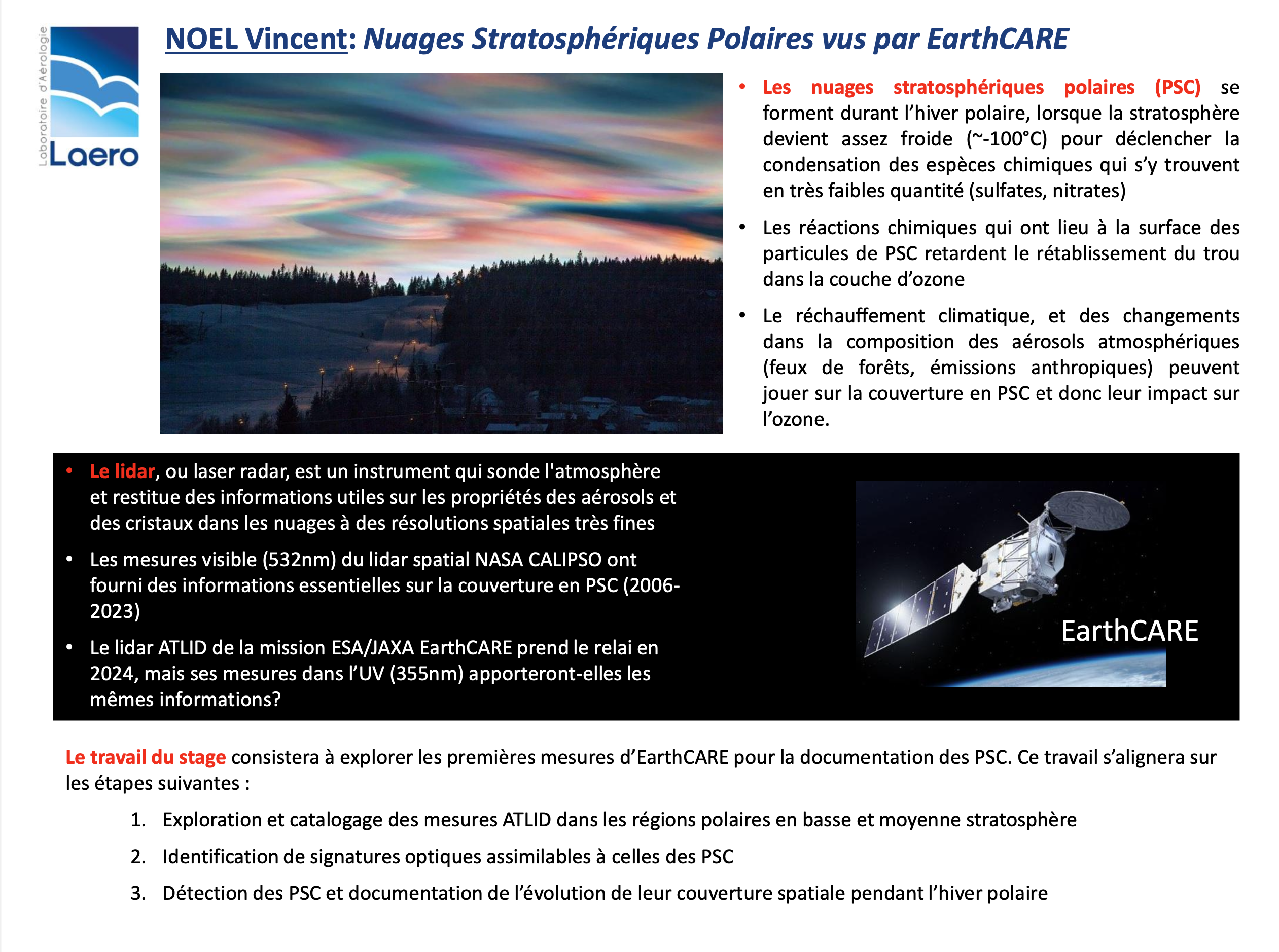 | Nuages stratosphériques polaires vus par la mission EarthCARE | Vincent NOEL | MECANO | Pourvu |
